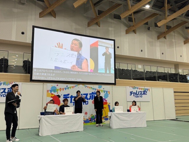 「パラアスリートにも大谷翔平選手のように“二刀流”を体現している選手がいます。それは何と何の二刀流でしょうか?」という問題には、「テニス選手とボールボーイ。打ってネットに当たったら自分で取りに行くんです」と即答し、会場を沸かせた。