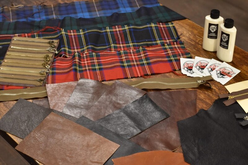 エアロレザーの豊富なラインナップから、まずはベースモデルを選ぶ。その後、完成後の姿を想像しながら、レザーや裏地、ファスナーなどを一つひとつ選び、こだわりの一着を製作することができる。自分の体にぴったりと合った一着を手に入れることができるのがカスタムオーダーの醍醐味だ。