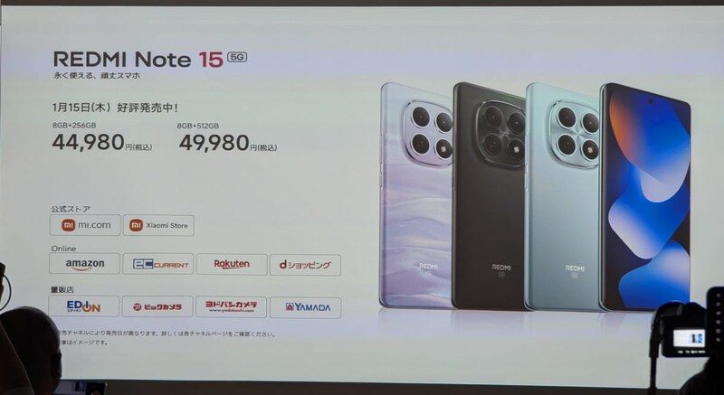 小米技術日本は1月15日、ミドルレンジスマートフォン「REDMI Note 15」シリーズを含むスマートデバイス・家電の新製品を発売しました。この記事では、同日に開催された新製品発表会・体験会から注目製品をピックアップしてご紹介します。