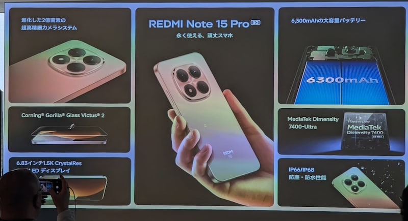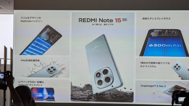 REDMI Note 15シリーズは、Xiaomiが持つバッテリー寿命や防水・防塵など耐久性のノウハウを活用し、買い替えサイクルの長期化を背景に長く使えるスマホとして特徴を打ち出しています。