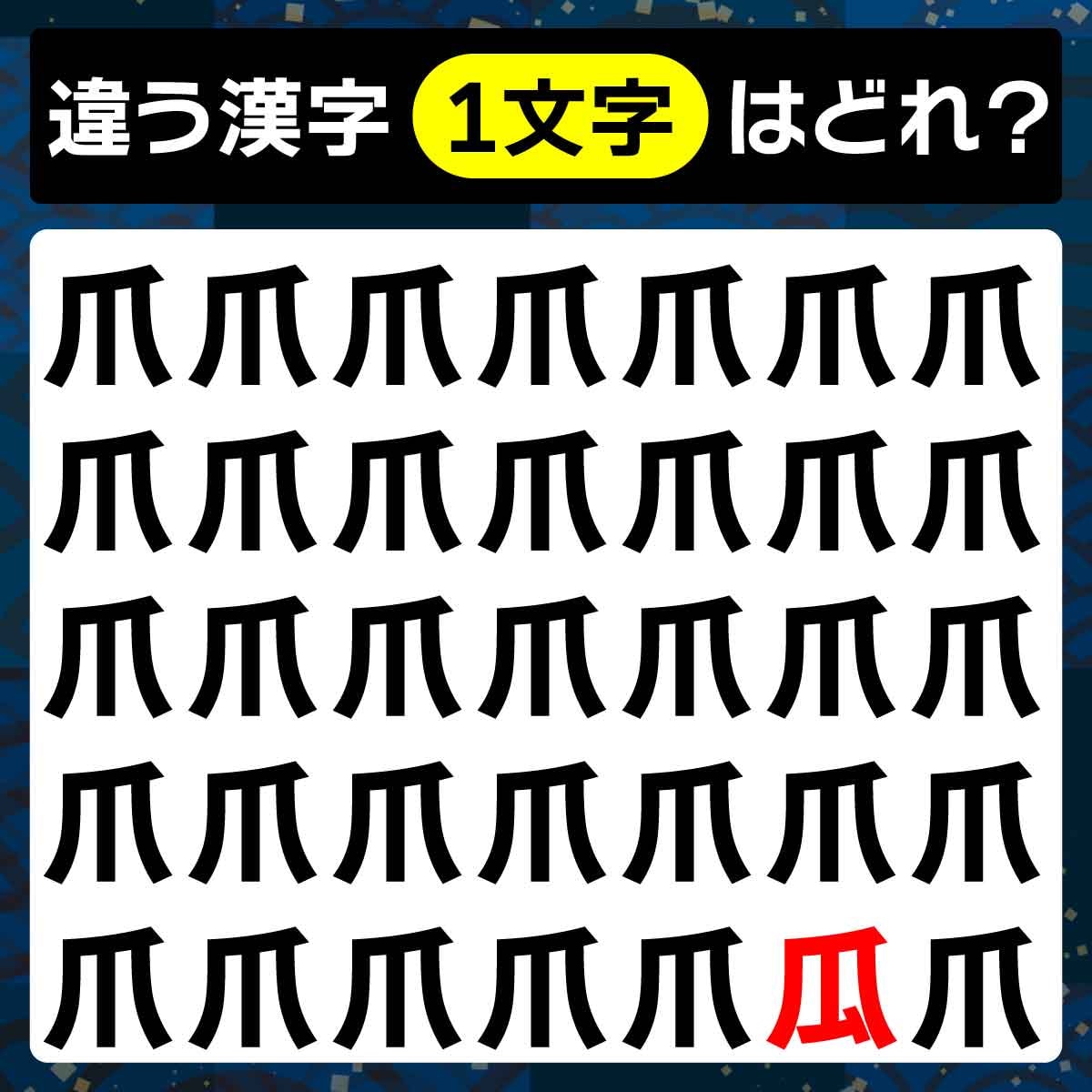 違う漢字は、1番下、右から2番目の文字でした!