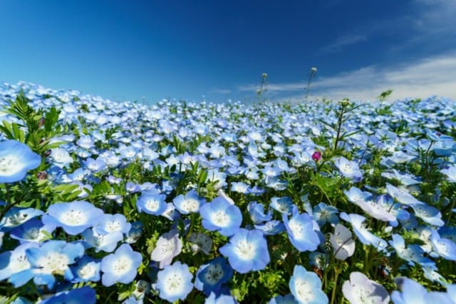4月中旬から5月上旬に、鮮やかなネモフィラの青色が楽しめます。