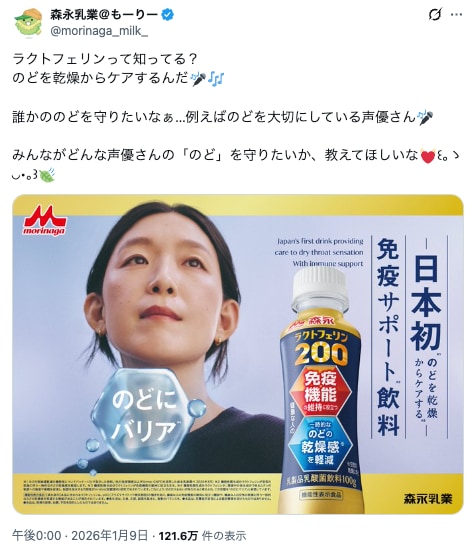 キャンペーンを行うきっかけは、森永乳業公式Xアカウントの「@もーりー」による「声優さんの“のど”を守りたい。どんな声優さんの“のど”を守りたいか教えてほしい」という何気ない呼びかけ投稿。