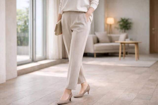 テーパードパンツは“何を履くか”以上に、“どうバランスを整えるか”で印象が決まります。ぜひ一度、ご自身のコーデを丈と足元から見直してみてください。<text:ミミ 監修:YOMI(パーソナルスタイリスト)> ※画像は生成AIで作成しています