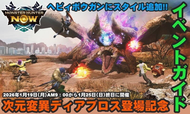 2026年1月19日(月)、本日より位置情報ゲーム『モンハンNow』にて“襲来! 次元変異ディアブロス”というイベントが開幕。