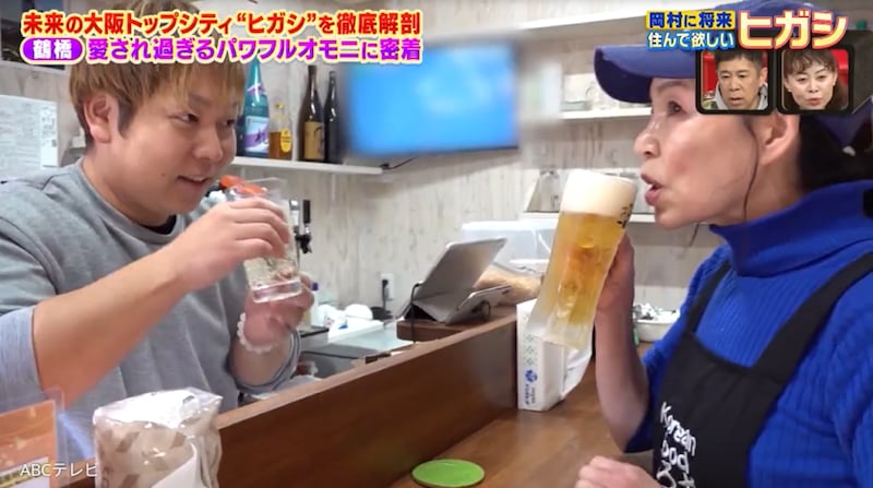 営業後のプライベートタイムも、真紀オモニは飲みまくり! 仲間たちとたらふくお酒を飲んだ彼女が夜9時に向かったのは、夫よりも「惚れまくっている好きな人」がいるという、ミナミのとあるバー。