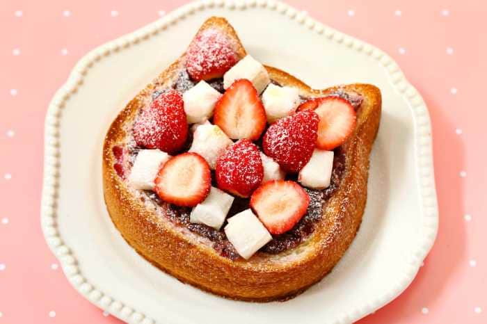 *「ねこねこ食パン練乳いちご」のアレンジ写真でトッピングしている食材は付属しておりません。