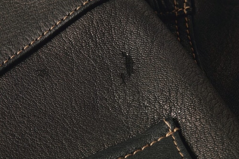 天然素材の証としてあえて鹿の傷は隠さないこだわりの仕上げ。ただし傷部分は自社工房にて目立たない箇所に配置して生産するという配慮も◎。