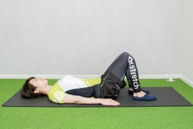 (1)仰向けになって、両ひざを立てる