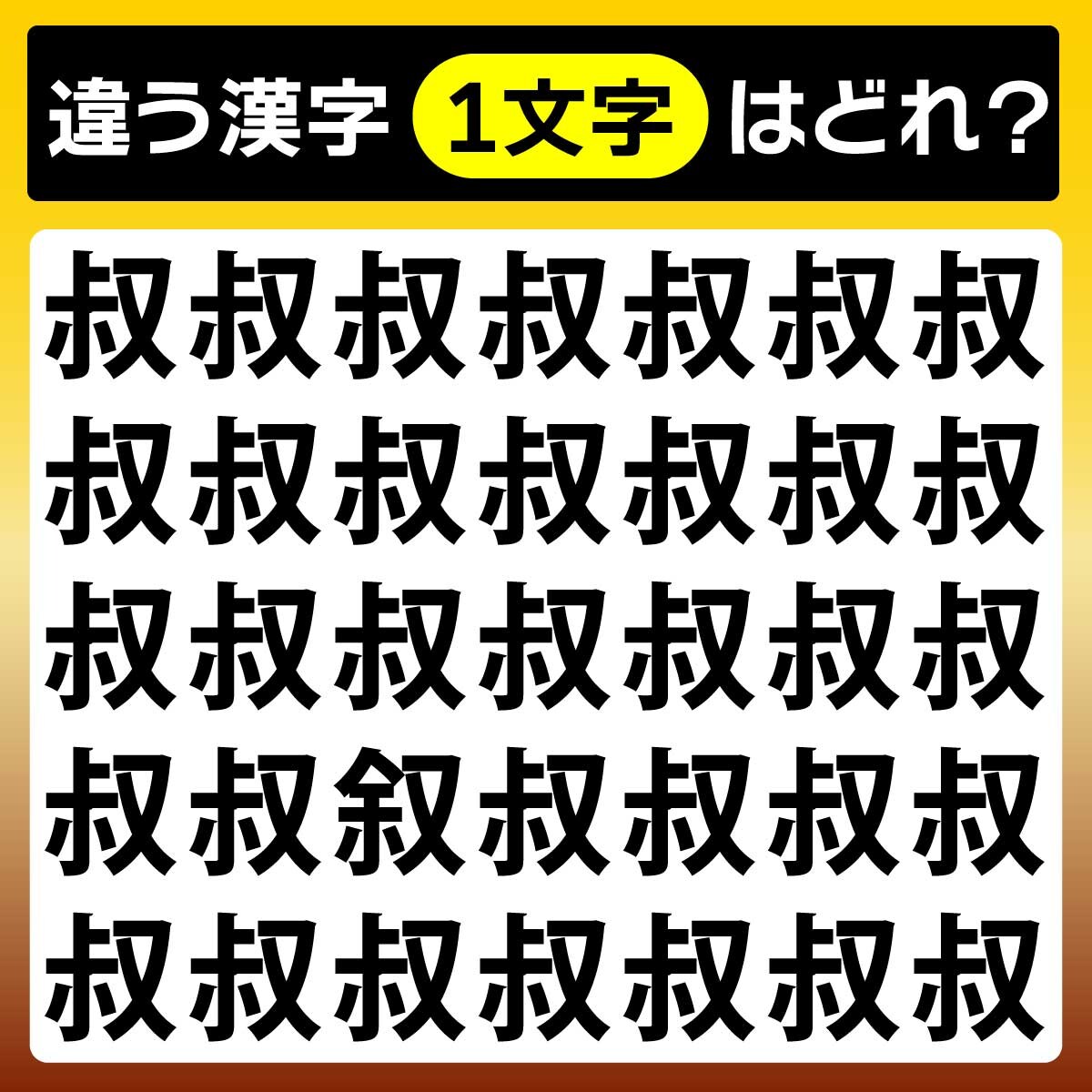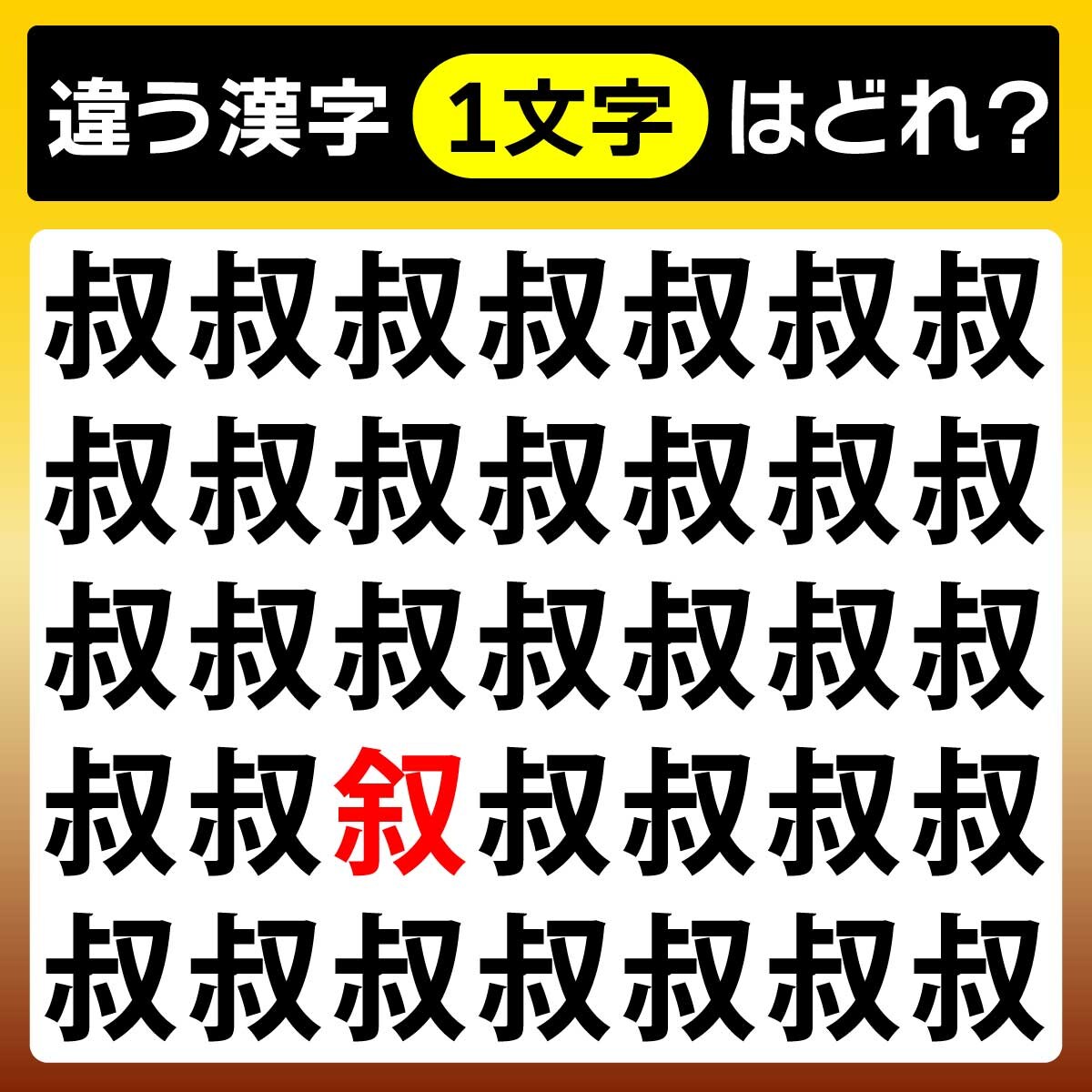 毎日配信中「毎日脳トレ」の時間です! 本日のクイズは「漢字のまちがい探し」に挑戦♪ 同じ漢字が並んでいるように見えますが、実は1つだけ違う漢字が……。よ~く探してみてください!