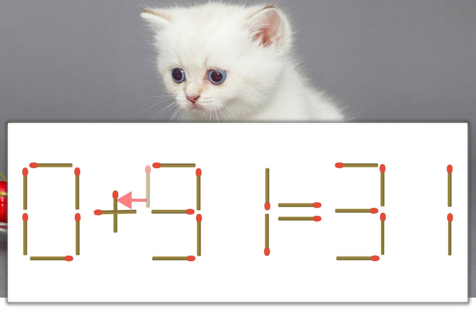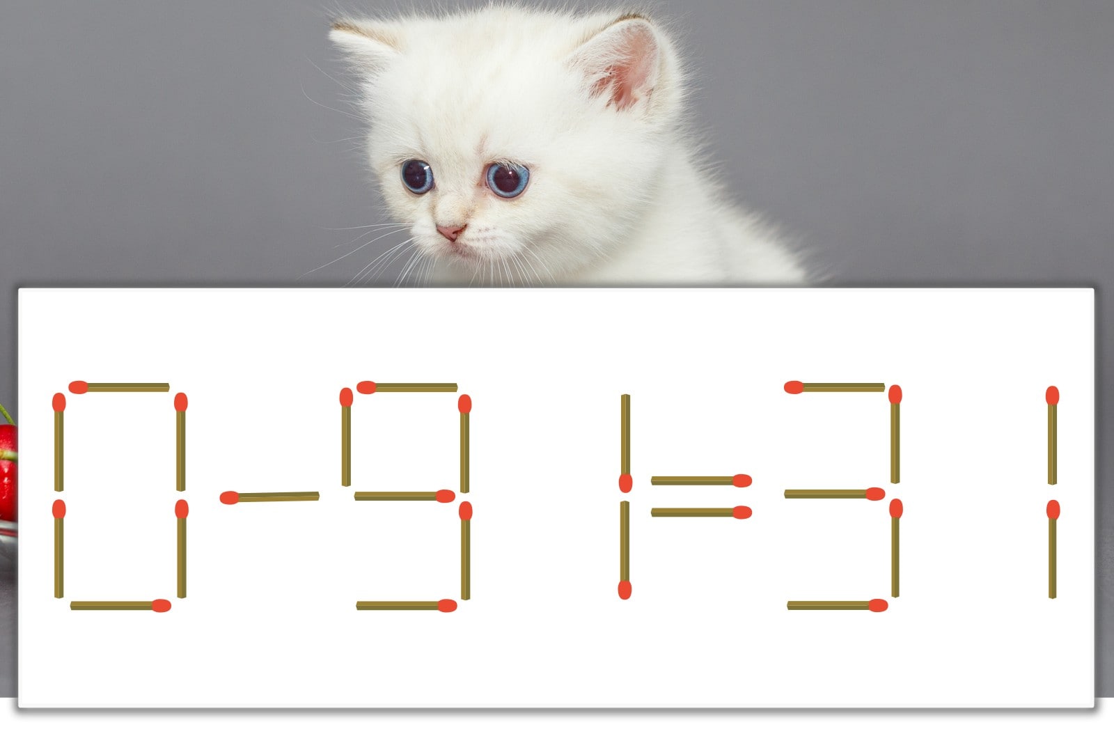 【問題】マッチ棒を1本動かして式を正しくしてください。