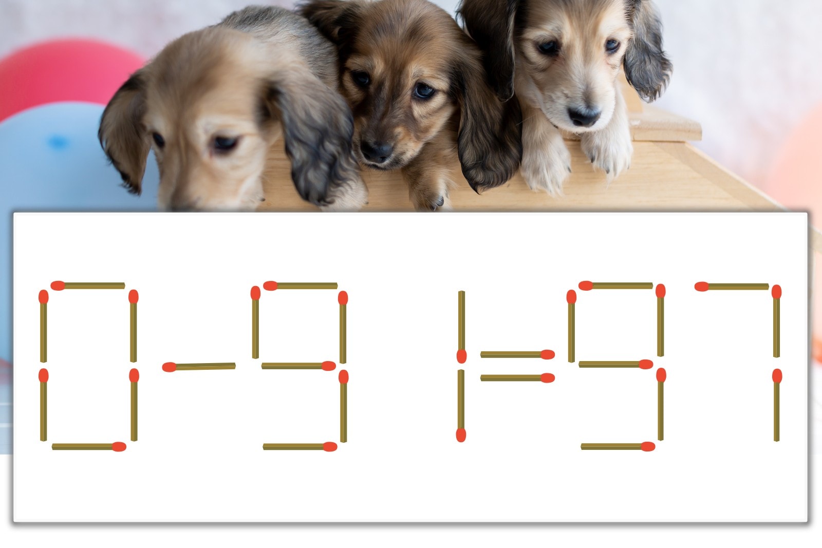 「7」を別の数字に変化させると答えが導き出せます。「7」のマッチ棒を1本移動して、「-」を「+」にしてみましょう。すると、「0+91=91」が成立します。