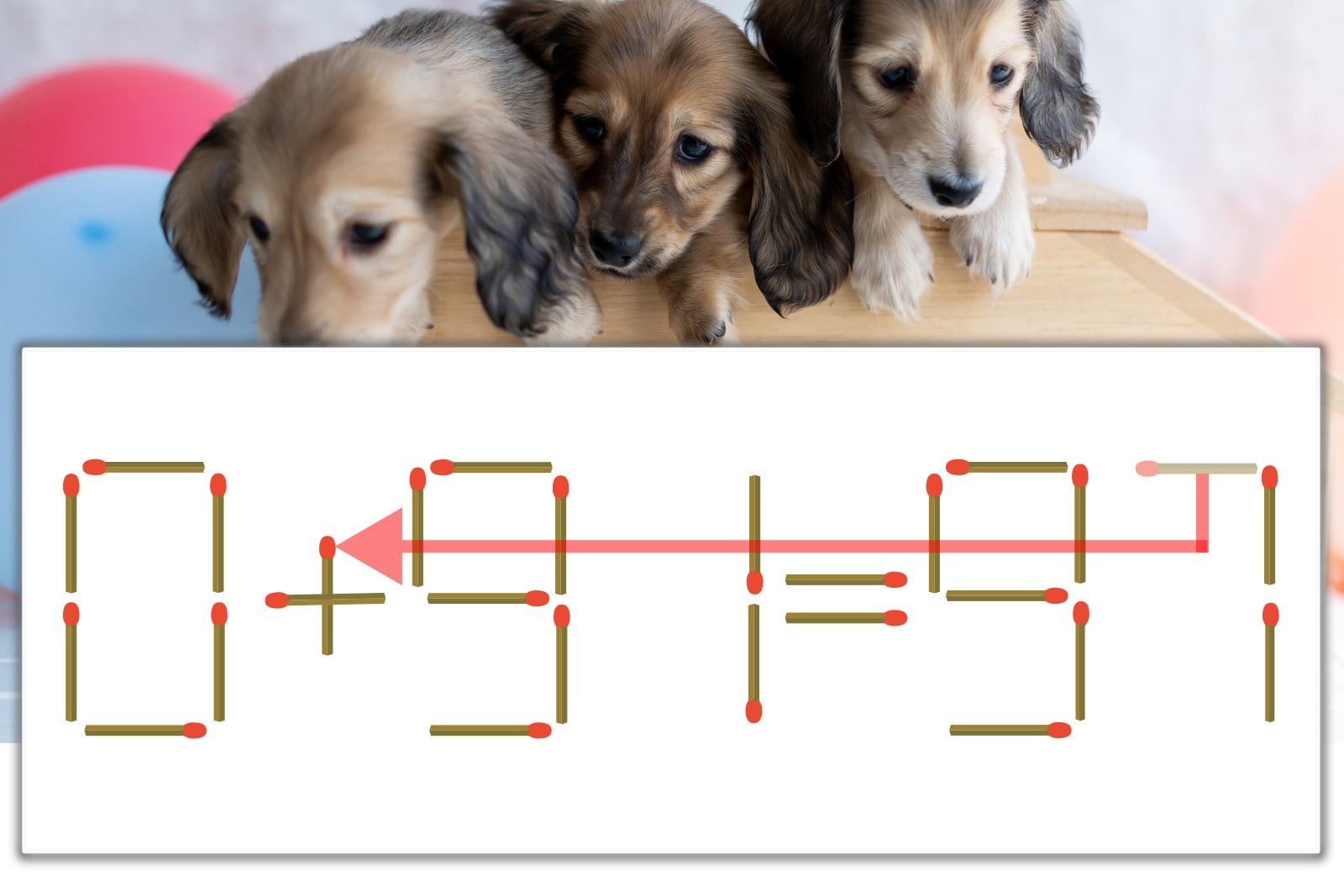 【問題】マッチ棒を1本動かして式を正しくしてください。