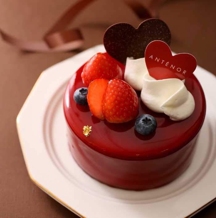 「バレンタイン・ルージュショコラ」は、真紅のグラサージュが目を惹く華やかな一品。