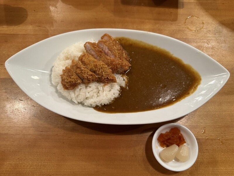 「かつ寿」さんのカレーは、とんかつありきでアシストをする感じのテイストであるのに対し、こちらは「サフラン」さんと同じくカレーだけでも充分に満足できる。