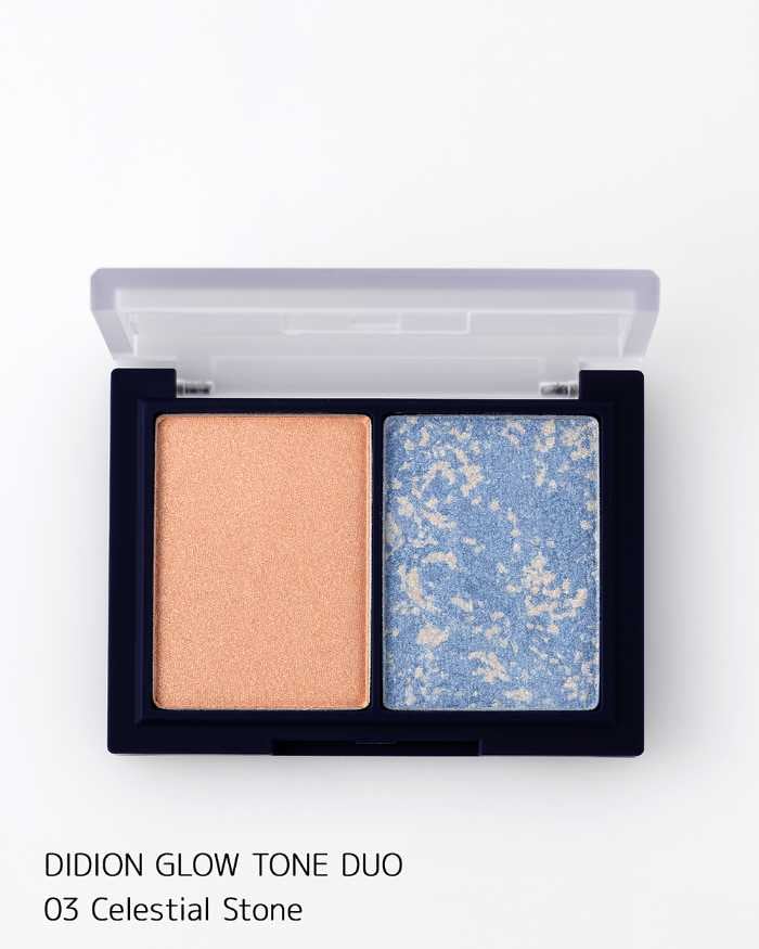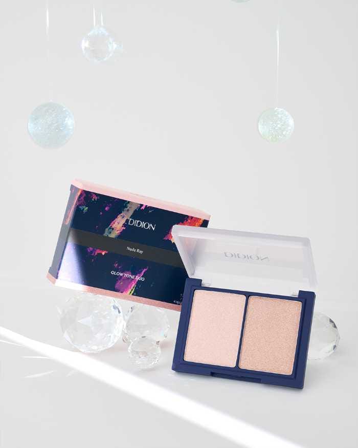 「DIDIONGLOWTONEDUO」は、全3種の2色入りハイライターパレット。カラーニュアンス×質感のコントラストで、「透明感」「血色感」「ツヤ感」を自在にコントロール*します。