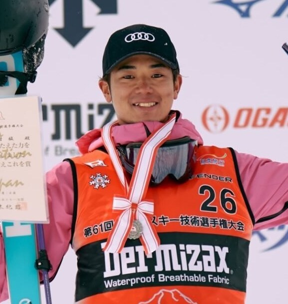 京都府出身。中学入学と同時に北海道へスキー留学をし、大学までアルペンスキーに打ち込む。ナショナルジュニアチームを経験し、大学卒業後に基礎スキーに転向。第60回技術選より3大会連続で総合2位。SAJナショナルデモンストレーター。
