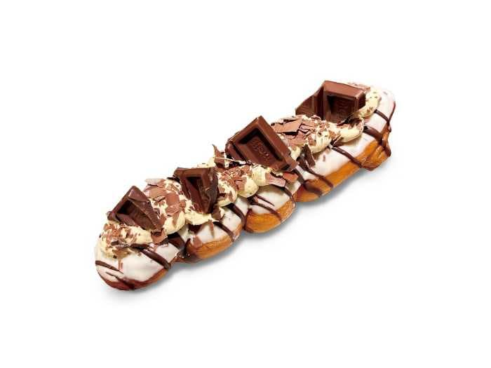 豪快にのせた板チョコレートのザクザクとした食感も、このドーナツならではの魅力。立体感のあるビジュアルは、思わず写真を撮りたくなる可愛さで、SNS映えも抜群です。