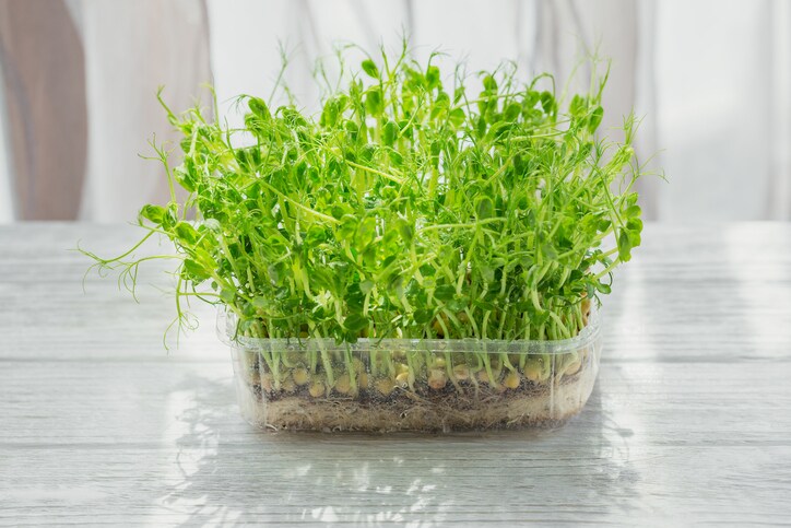 ネギや小松菜、豆苗の根元をコップに入れて窓辺に置くだけ。大根やにんじんの切りっぱしなどでも再利用ができます。