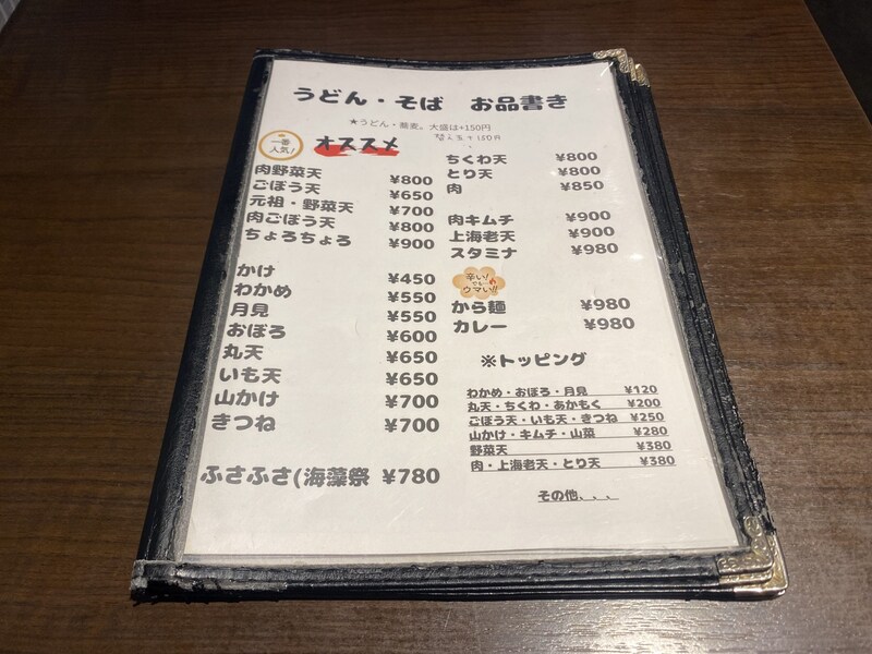 この他に、季節限定メニューや冷やし・ぶっかけシリーズなんかもありました。