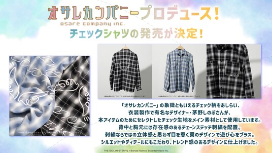 『アイドルマスター シャイニーカラーズ』のライブ衣装制作を担当しているオサレカンパニーがプロデュースした、チェックシャツを発売致します。