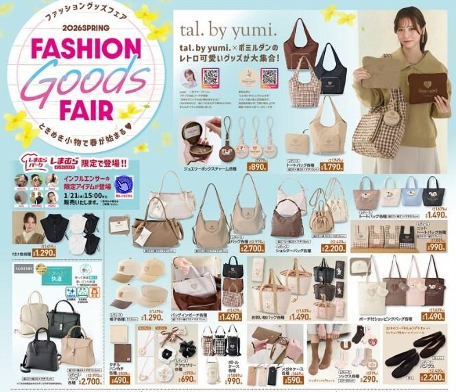 今週は「ファッショングッズフェア」を開催中。春コーデに取り入れたい、ベージュやブラウンを基調としたレトロ可愛い小物が集結しました。