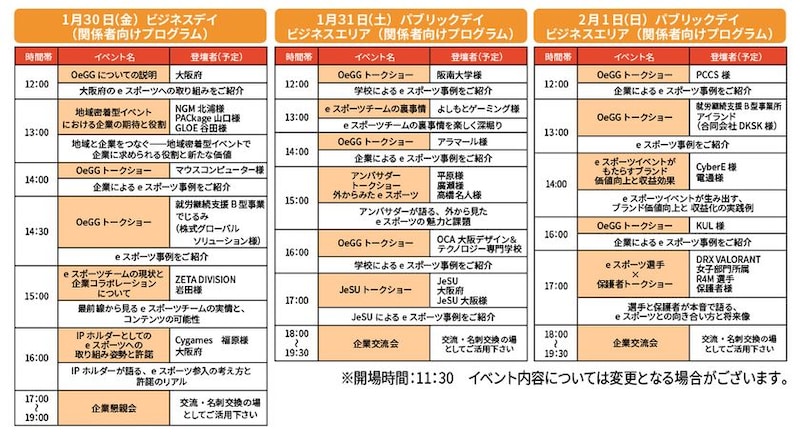 また、ビジネスデイは3日間にわたり、グラングリーン大阪・北館にて、OeGGによるeスポーツへの取り組みご紹介や加盟企業等によるeスポーツ事例紹介など、多数の関係者向けイベントをご用意しています。
