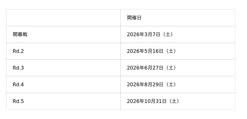国内で唯一JAF(日本自動車連盟)の公認を受けたeモータースポーツ大会(レーシングシミュレーターを使用したeスポーツ大会)「UNIZONE(ユニゾーン)」を運営する一般社団法人日本eモータースポーツ機構(東京都千代田区、代表理事:出井宏明、以下「JeMO」)は、UNIZONE 2026のリーグスケジュールおよび参戦チームを発表します。