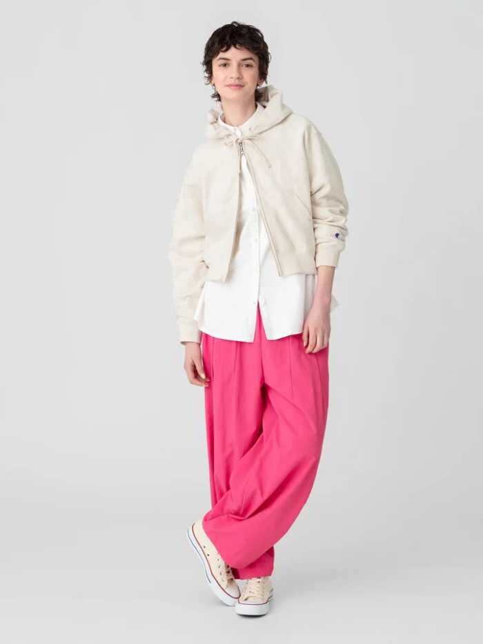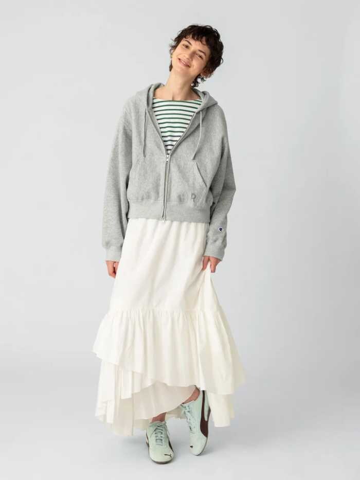 季節の変わり目に活躍するダブルジップフーディを、RHCらしい感性でアップデート。着丈を程よく短くしたコンパクトなシルエットは、バランスが取りやすく女性らしい印象に。