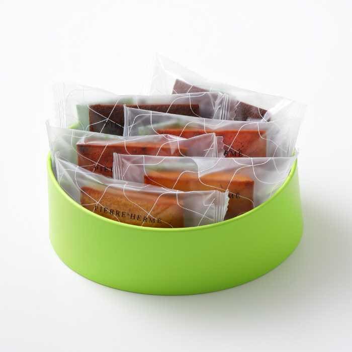 中に詰め合わされているのは、ピエール・エルメ・パリで高い人気を誇るフィナンシェ3種。
