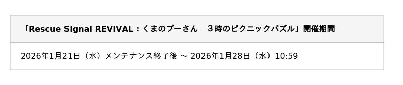 ※本イベントは2025年に開催された「Rescue Signal :くまのプーさん 3時のピクニックパズル」の復刻開催となり、復刻にあたり一部調整が行われております。