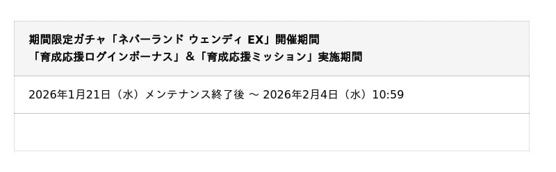 あわせて、ガチャチケットやキャラクター育成素材が獲得できる「育成応援ログインボーナス」や「育成応援ミッション」も実施いたします。