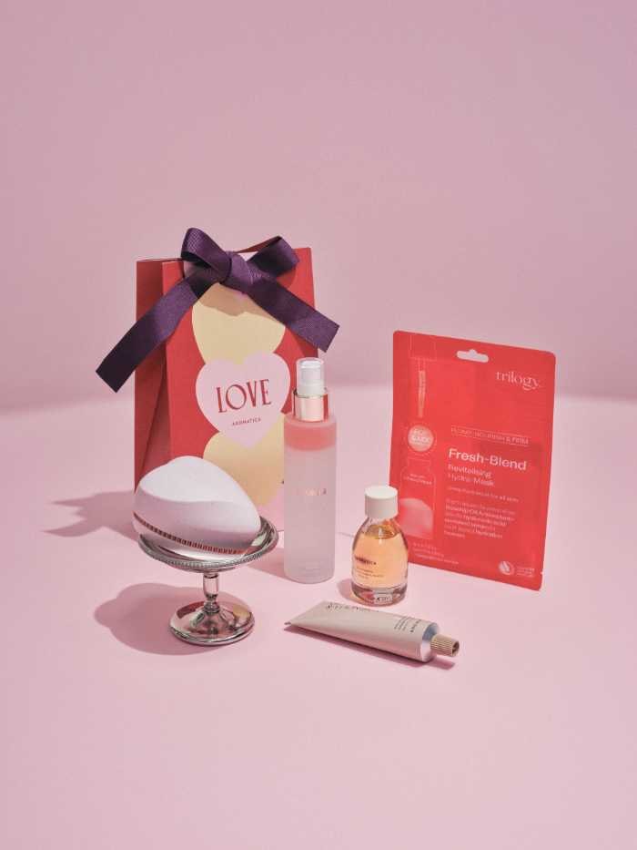 想いを届けるGift&Self Care Itemsも充実。【ReFa】リファハートブラシアースピンクは3,300円。【AROMATICA】LOVE Gift Setは、マグノリア&サンダルウッドの香りが広がるセットで3,300円。