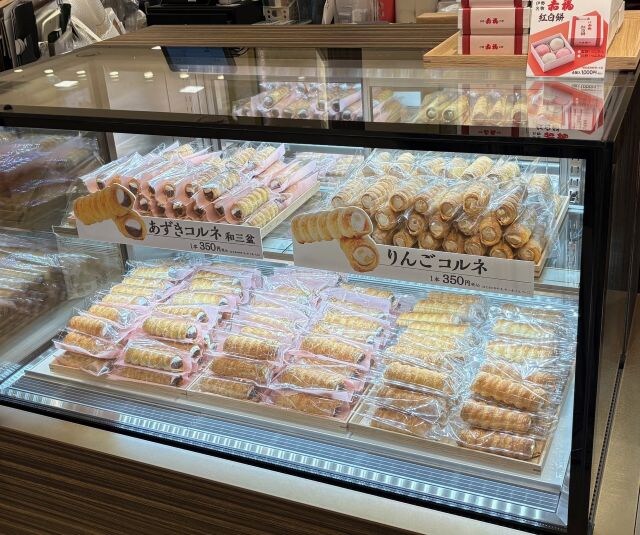 左から「あずきコルネ和三盆クリーム」「りんごコルネ」各1本350円