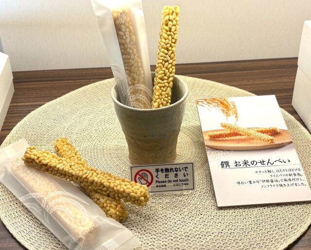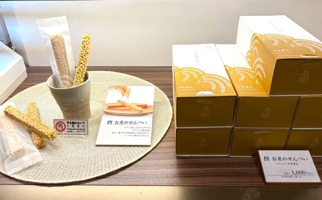 「五十鈴茶屋」が掲げる“新たな米文化の価値”づくりへの挑戦として、新商品の米菓「饌(せん) お米のせんべい」が誕生。お米をパフにした “せんべい”を、伊勢の味わいを添える「伊勢醤油」で香ばしく風味付けし、ノンフライで焼き上げています。軽い食感でサクサクと食べやすく、甘いものが苦手な人にも喜ばれそう!