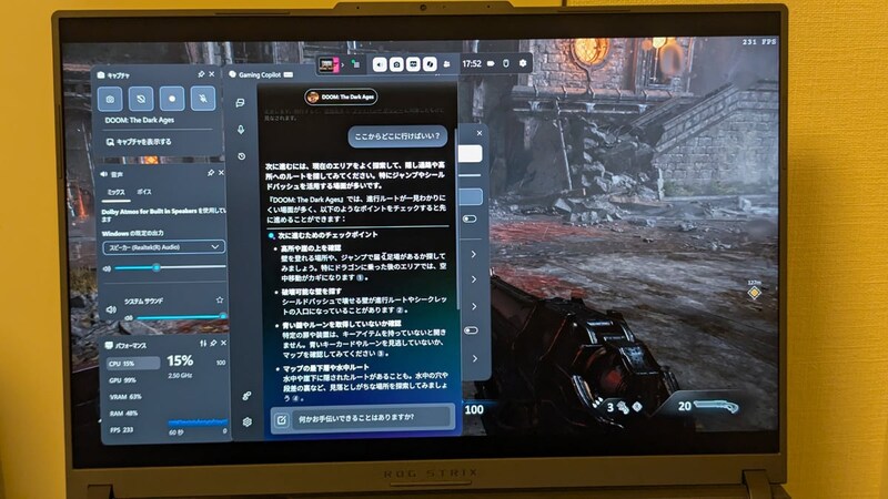 XboxアプリのGame Barでは、テキストや音声のチャットでAIにゲーム攻略の相談ができるサービス「Gaming Copilot(ベータ)」が利用できます。起動中のゲームのタイトルを認識して、適切なアドバイスがもらえるのが心強いですよ。