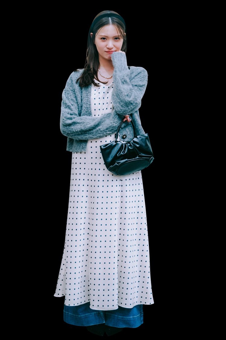 キャミワンピをフレアデニムに重ねて、一気に今っぽい上級者コーデに♡ ホワイトワンピもグレーやブラックとあわせれば膨張見えを防いで盛れる!
