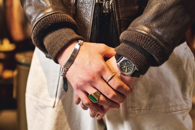 24歳とは思えないクラシックかつ独自のエッセンスが随所に感じられるコーディネイトを見せてくれる田中さん。この日は、「バズリクソンズ」のG-1を軸に、ロックバンド「横浜銀蝿」からインスパイアされた装いを披露してくれた。