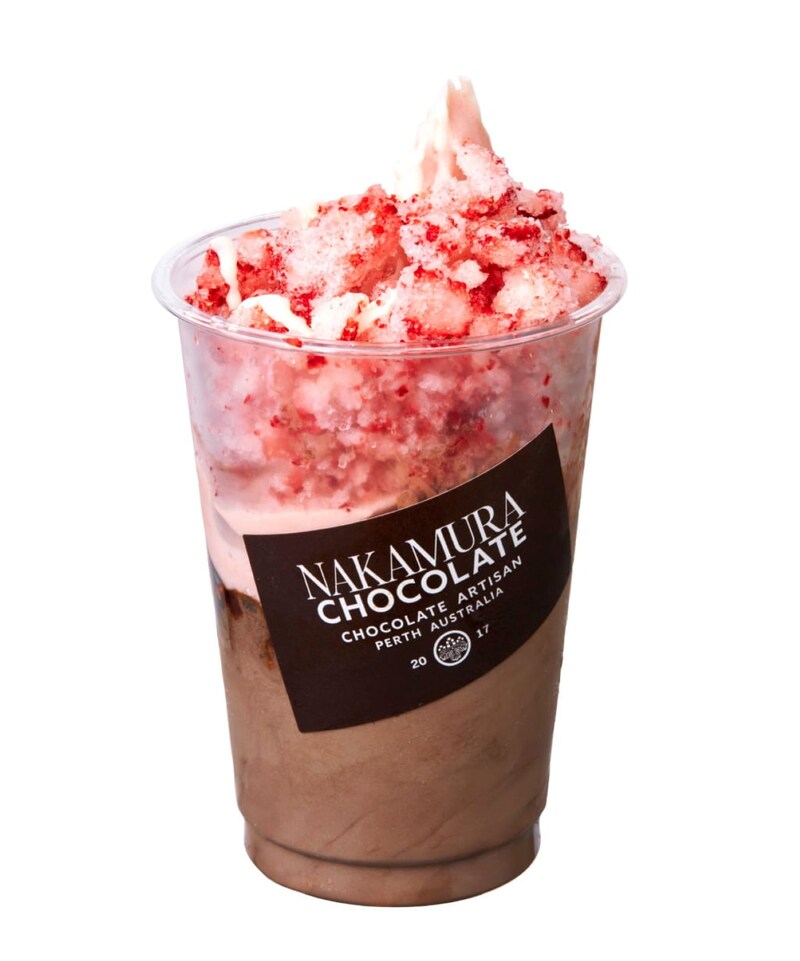 また、「ナカムラチョコレート」は、あまおうとチョコレートのソフトクリームにいちごを丸ごと削る「いち氷(R)」をたっぷりトッピングした「あまおうのPARFAIT」も展開。