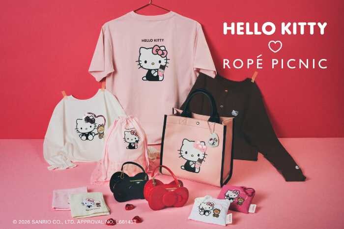 新年に話題を集めたROPE’ PICNICとハローキティのコラボレーションから、待望の新作コレクションが登場します。今回のテーマは『LOVE MY HELLO KITTY!ありったけの「スキ」を集めて』。ピンクをキーカラーに、バレンタインをイメージした甘くときめくデザインが勢ぞろい♡大人可愛いウエアから、思わず目を引く小物、さらに親子で楽しめるアイテムまで、今だけの特別感あふれるラインアップに注目です。