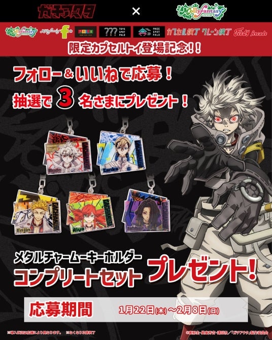 また、限定カプセルトイ用商品の展開を記念し、モーリーファンタジー公式X・Instagram で「ガチアクタ メタルチャームキーホルダー コンプリートセット」が当たるプレゼントキャンペーンを開催いたします。