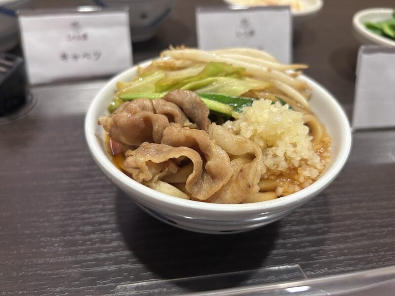 使用素材・豚ロース(1皿)・ ワシワシ麺・たけのこ・ キャベツ・もやし・ニラ