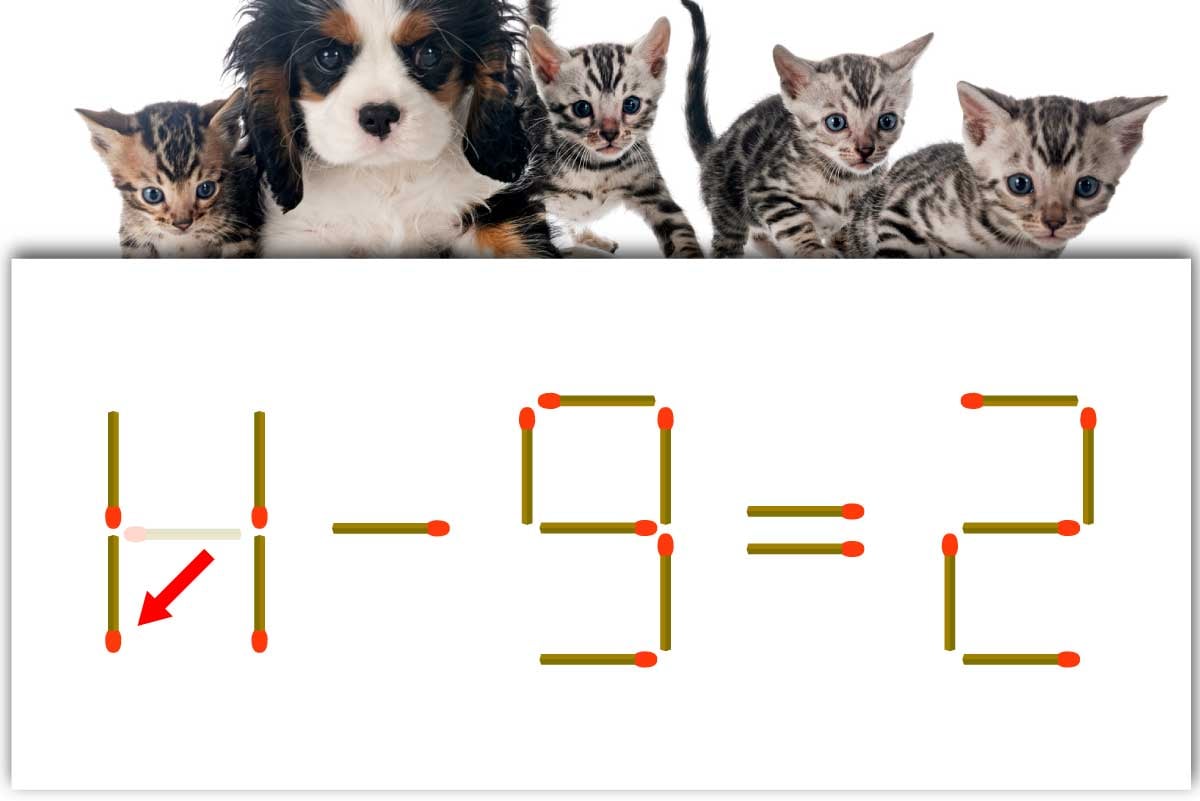 「4」の横マッチ棒を1本移動させて「11」を作り、「11-9=2」にする。※解答は複数ある場合があります。