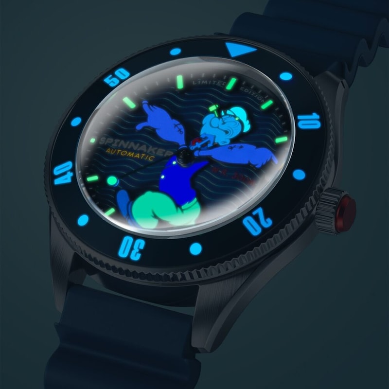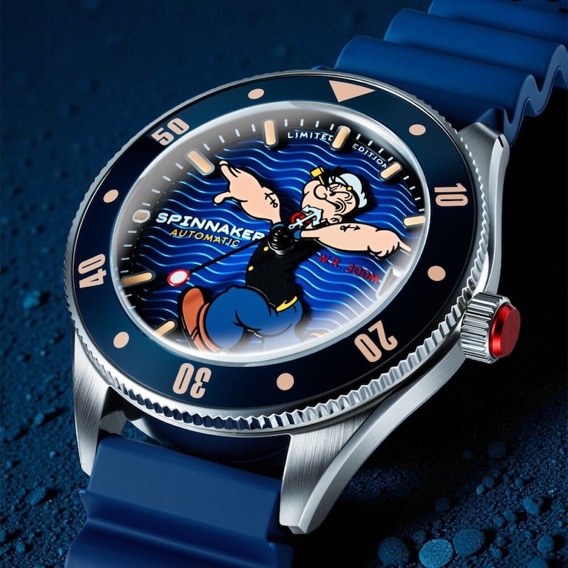 本作のベースとなる「チャレンジャー」は、過酷な環境下でも信頼できる性能と、力強いデザインを併せ持つスピニカーを象徴するダイバーズウォッチ。その名の通り、挑戦を恐れず前進する精神を体現しており、この“チャレンジスピリット”は、逆境に立ち向かい道を切り拓いてきたポパイの生き様とも重なる。
