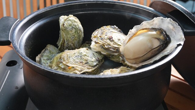 ブルーテラスでぜひ味わいたい名物メニューが、「牡蠣の白ワイン蒸し」です。