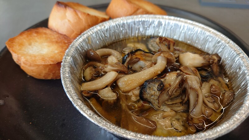 写真左から:「牡蠣と茸のアヒージョ」(900円)、「牡蠣フライ」(650円)