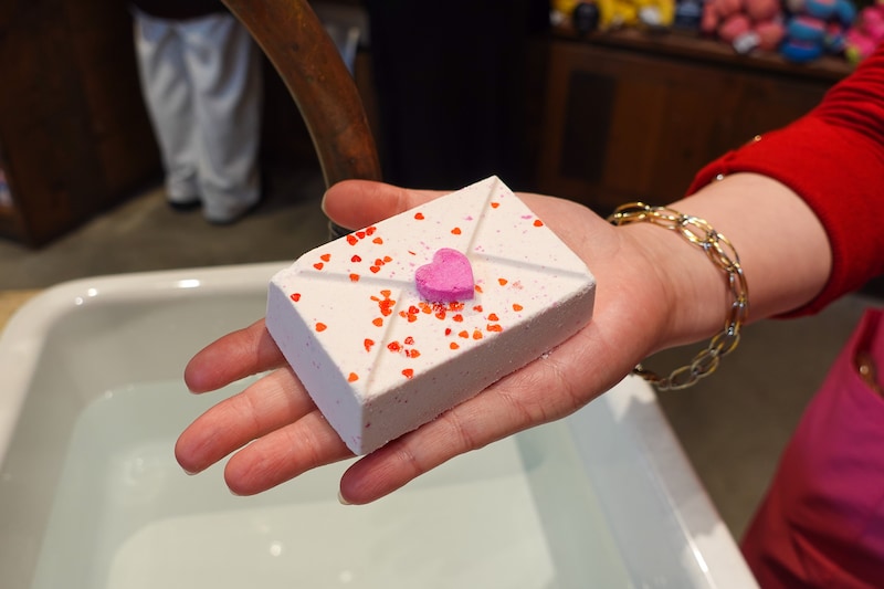 さらに、バレンタイン限定のバスボムは、お湯に入れた瞬間に色彩とラメがドラマチックに広がるタイプも。バスルームいっぱいに甘い香りが広がり、ロマンチックなバスタイムを演出してくれそうです。