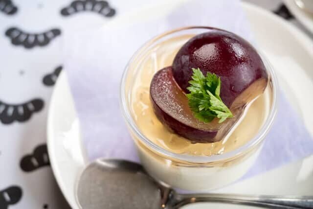 ▲デザートは「フロマージュブランを使用した羽衣プリン 京丹後産梨のジュレ 季節のフルーツ」
