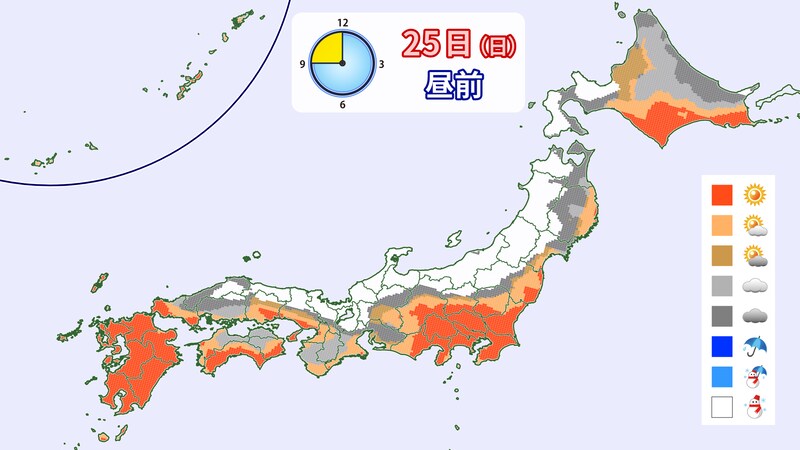 25日(日)は、再び強い冬型の気圧配置。奥羽山脈周辺も雪が降りそうです。風が強まるので、リフトの運行などに支障が出ないかHPでチェックしてください。