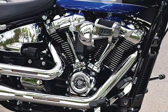 排気量1923㏄の「ミルウォーキーエイト117」を搭載。エアクリーナーはパフォーマンスを予感させるエルボータイプを採用。エンジンはクロム仕上げで豪華な印象。